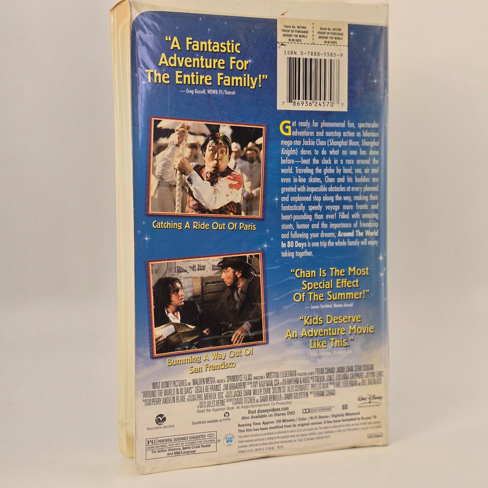 Travel the globe the old-school way with Around the World in 80 Days on VHS, starring Jackie Chan in Disney’s action-packed adaptation of the Jules Verne classic. Blending adventure, comedy, and big early-2000s spectacle, this release captures a moment when family blockbusters still had a permanent place on the tape shelf.