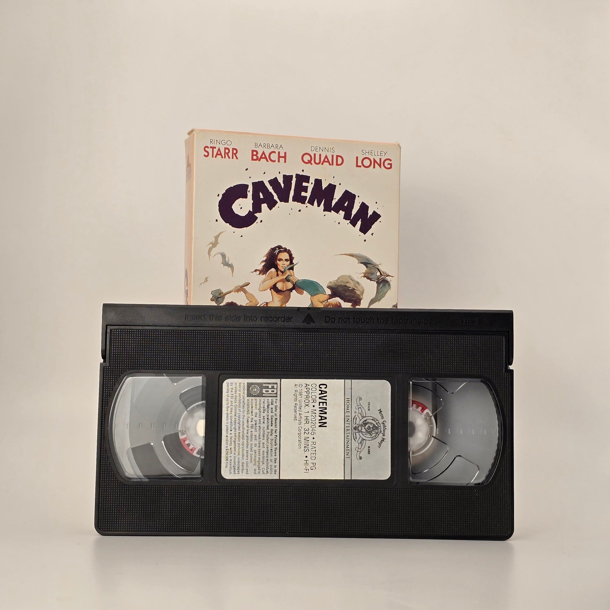 Caveman VHS is a quirky early 1980s prehistoric comedy featuring Ringo Starr, Barbara Bach, Dennis Quaid, and Shelley Long in a lighthearted romp set in Stone Age times. This offbeat comedy blends slapstick humor, campy visuals, and absurd situations as a group of cavemen and cavewomen navigate love, rivalry, and primitive life with exaggerated antics. The VHS edition showcases the original MGM/UA Home Video packaging and artwork, which will appeal to collectors of vintage comedies and obscure cult titles from the height of the VHS era. This isn’t a mainstream blockbuster, but its unique premise and cast make it an interesting find for fans of retro genre films, oddball VHS collections, or anyone building a shelf of nostalgic analog media. Caveman’s combination of prehistoric silliness and early 80s home video charm fits well alongside other vintage comedies and cult favorites, making it a fun addition for collectors who appreciate rare and lesser-seen titles.
