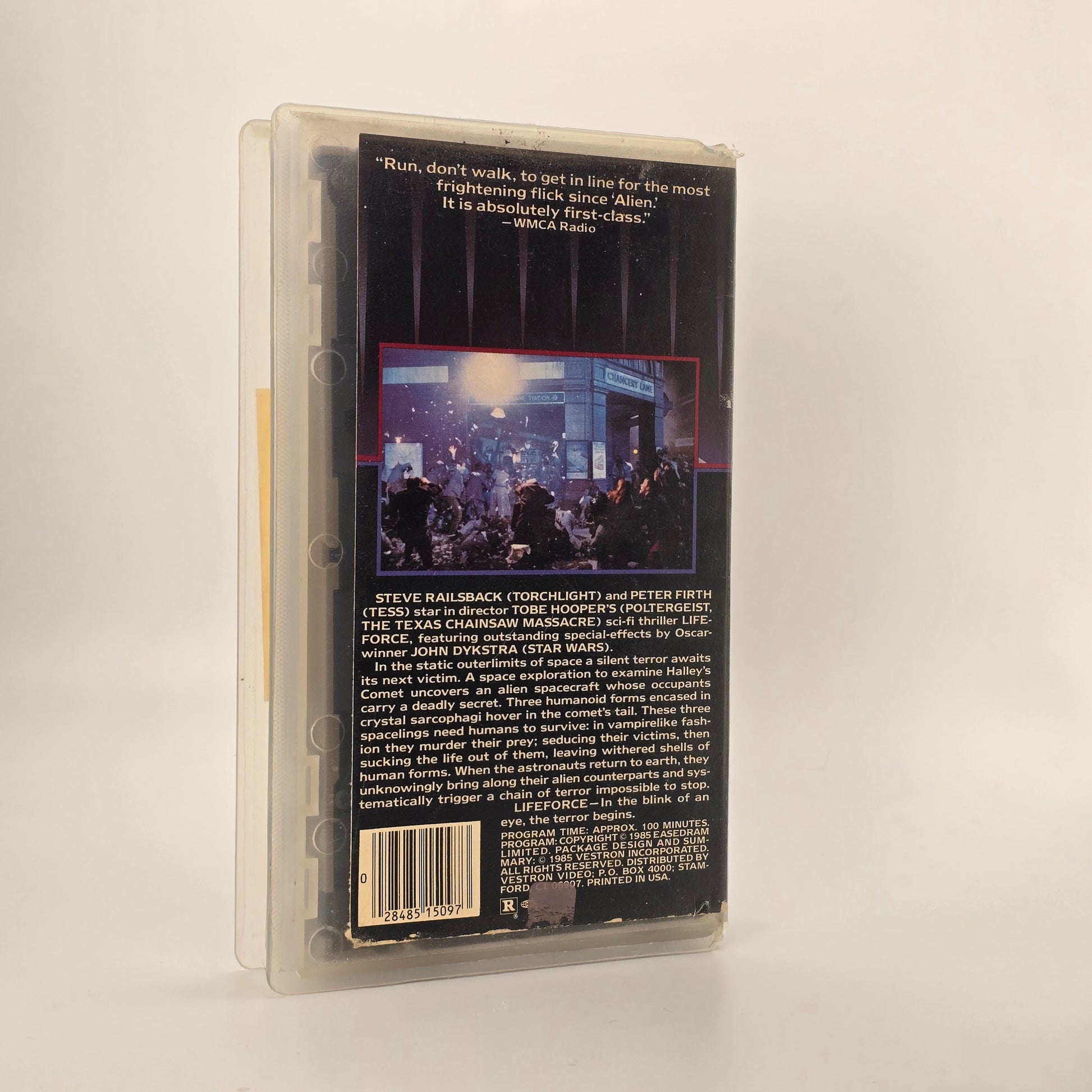 The tape shows typical wear consistent with age and rental history, while the cover art remains bold and visually impactful. Lifeforce is especially desirable among Cannon collectors, sci-fi horror fans, and anyone curating a shelf of iconic VHS artwork from the 1980s. A strong addition to a serious VHS library or a visually striking display piece for genre enthusiasts.