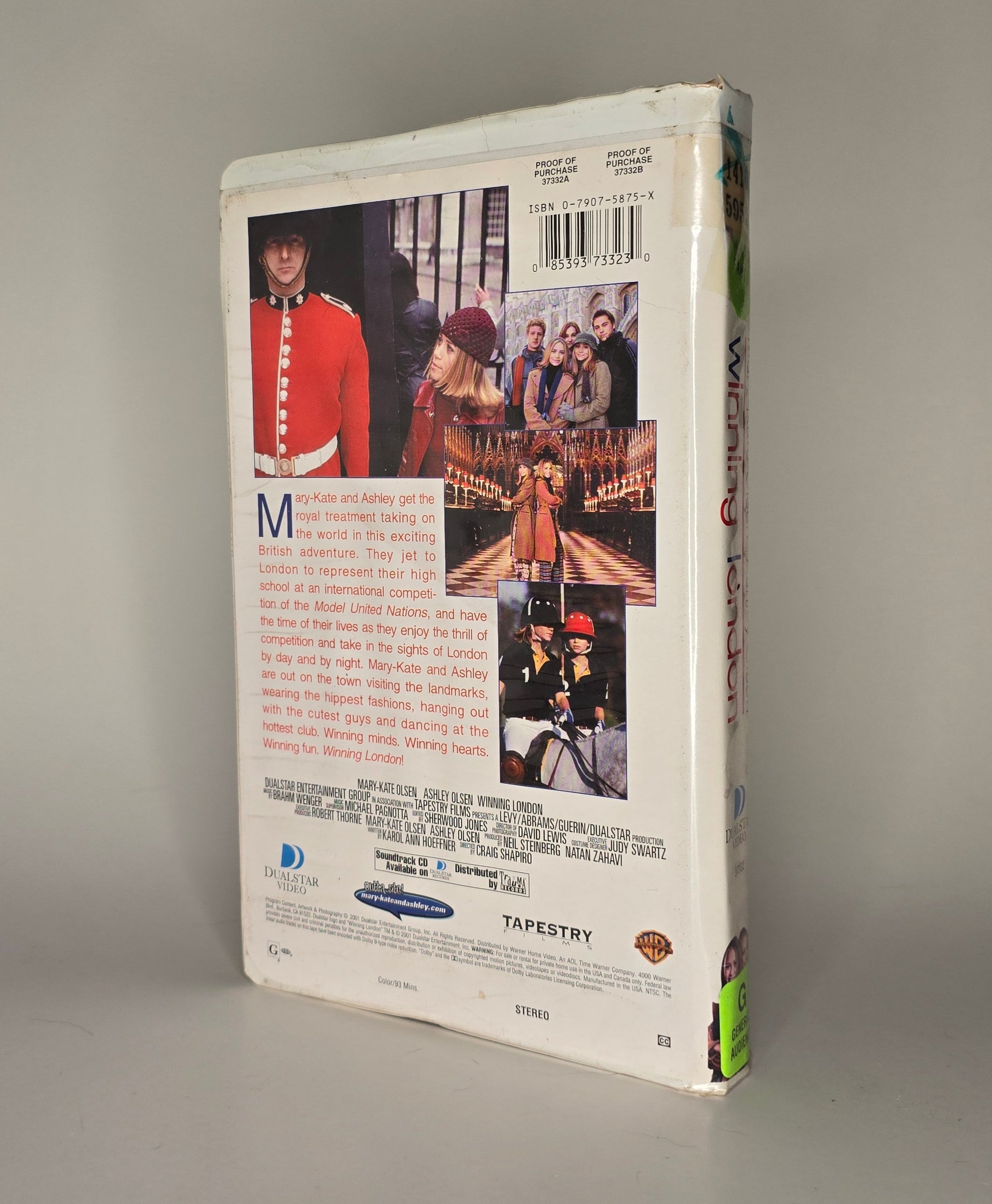 Experience the charm of Winning London on VHS, a delightful 2001 teen comedy featuring Mary-Kate and Ashley Olsen. In this engaging film, the twin sisters play Chloe and Riley Lawrence, high school students who travel to London for a prestigious Model United Nations competition. As they navigate cultural differences and diplomatic challenges, their adventure is filled with humor, personal growth, and romantic moments. Set against the iconic backdrop of London, Winning London offers a fun and family-friendly look at international relations and teamwork. Perfect for fans of the Olsen twins and collectors of nostalgic 90s media, this VHS brings the charm and wit of Mary-Kate and Ashley to your home. Enjoy a classic tale of teen adventure and diplomacy, all in the timeless format of VHS. Ideal for family movie nights and Olsen twins enthusiasts.