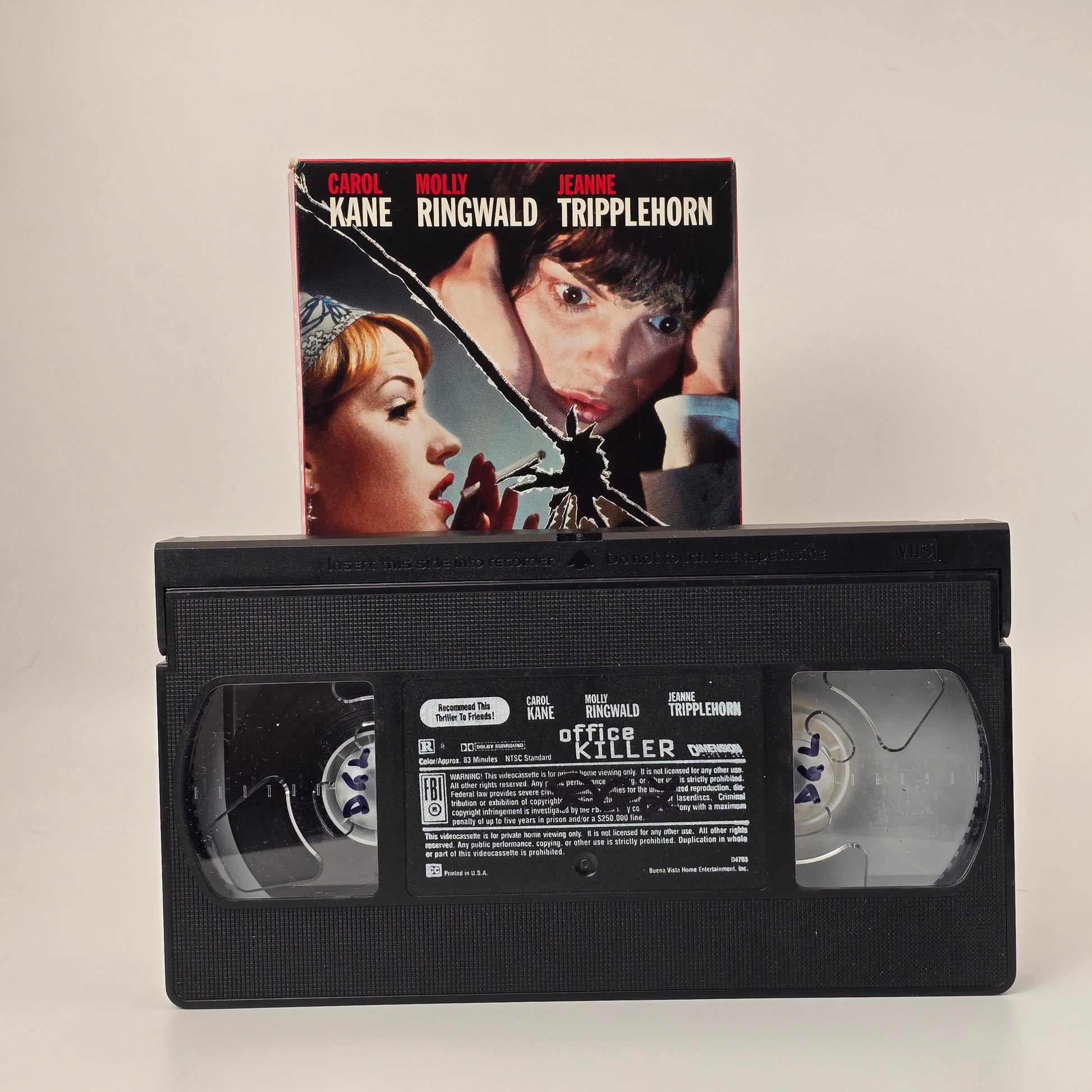 Add a cult 90s dark comedy thriller to your VHS shelf with Office Killer. Directed by acclaimed artist Cindy Sherman and starring Carol Kane, Molly Ringwald, and Jeanne Tripplehorn, this offbeat film blends satire, horror, and workplace absurdity into a uniquely strange entry in the Dimension Films catalog.