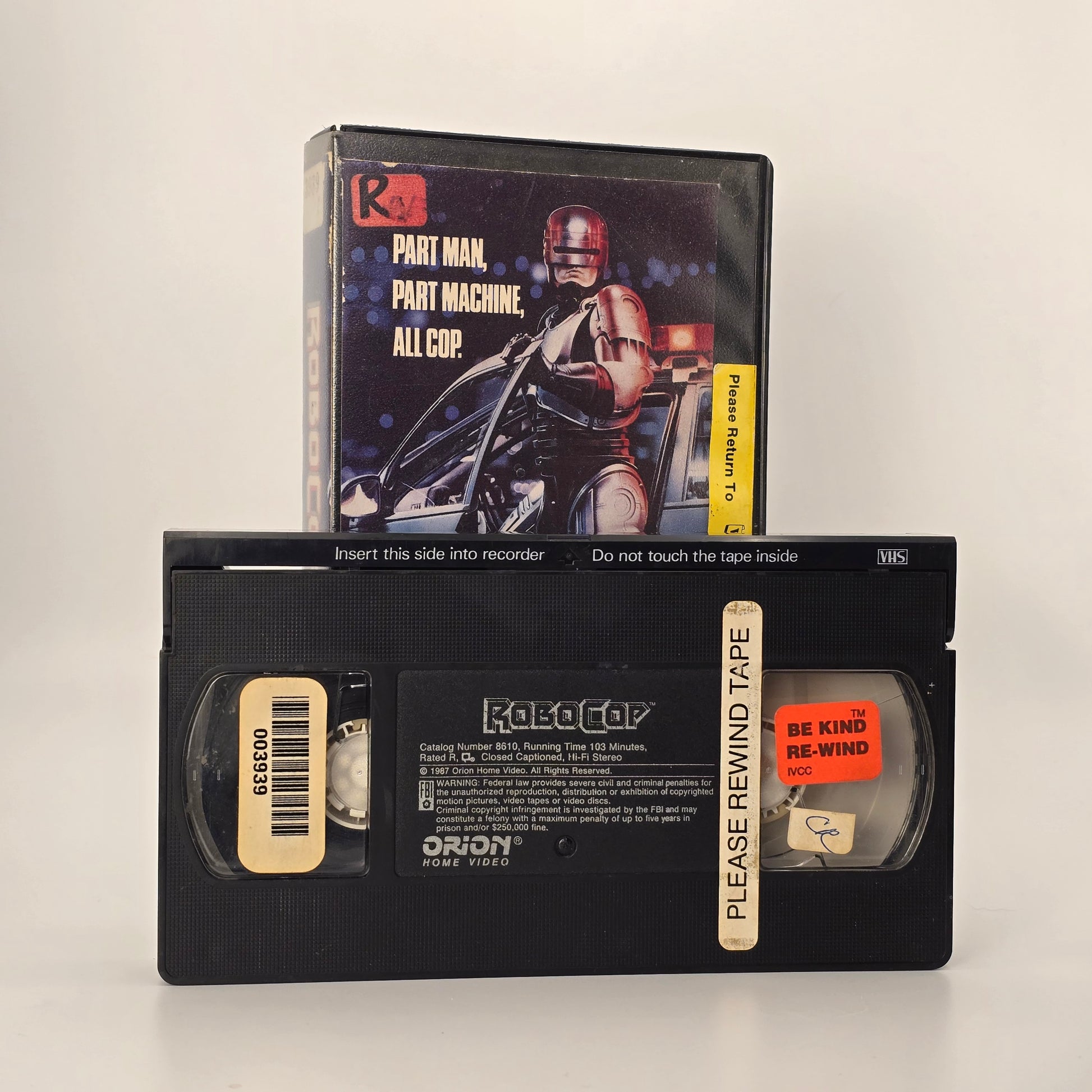 This original VHS release of RoboCop delivers peak late-1980s sci-fi action in its classic home video format. Released by Orion Home Video, this tape features the iconic ex-rental clamshell packaging that defined video store shelves of the era.