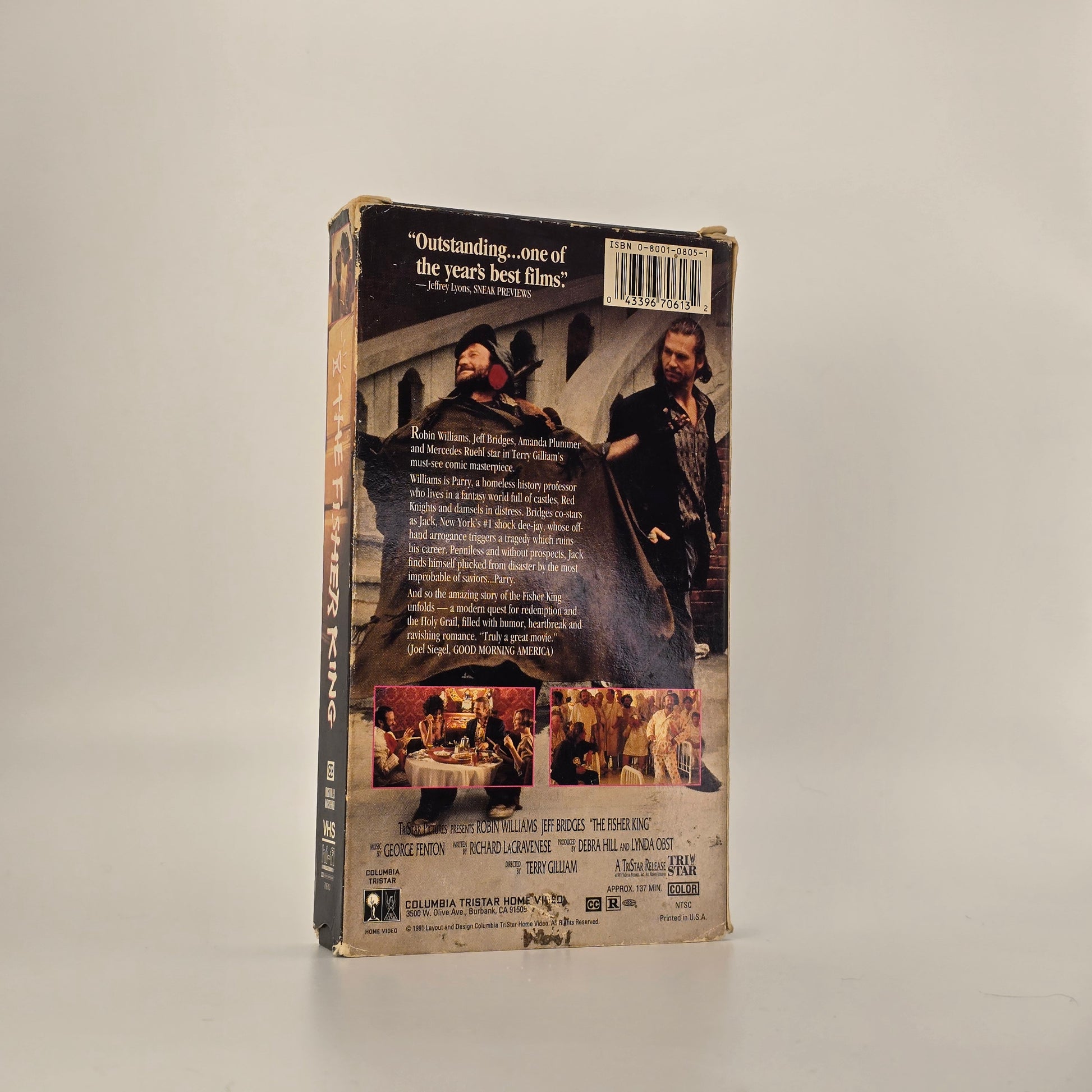 The Fisher King is a beautifully offbeat 1991 drama directed by Terry Gilliam, starring Robin Williams and Jeff Bridges in two of their most memorable roles. This cult favorite blends heartbreak, humor, and fantasy as it follows a disgraced shock-jock and a homeless man bound together by tragedy and redemption. Williams delivers a deeply emotional performance as Parry, a grief-stricken dreamer who believes he is on a quest for the Holy Grail, while Bridges brings grounded vulnerability as Jack, a man seeking forgiveness for his past mistakes. The film moves effortlessly between raw realism and surreal imagination, making it a standout of early 90s cinema. This original Columbia TriStar VHS captures the era’s distinctive cover art and theatrical presentation, a must for collectors of character-driven films and Gilliam completists. Revered for its powerful performances and unique tone, The Fisher King has earned its place as a cult classic that continues to resonate decades later, making this tape a meaningful addition to any serious VHS collection.
