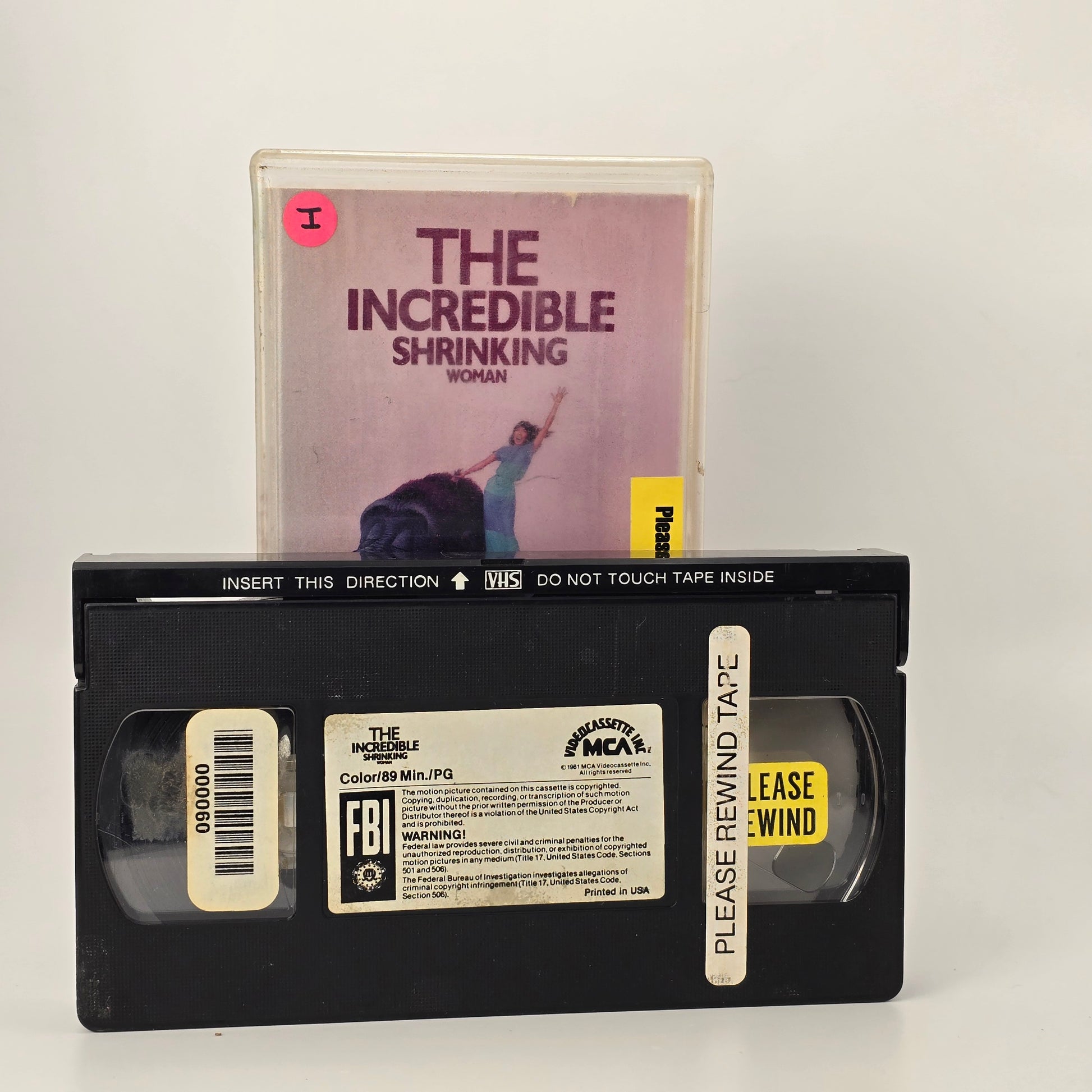The Incredible Shrinking Woman is a cult favorite from the early 1980s, starring Lily Tomlin in a sharp, satirical twist on classic sci-fi themes. Blending domestic comedy with over-the-top special effects, this Universal release has earned a loyal following among fans of offbeat genre crossovers and strong female-led cult cinema. This copy is a former rental cut box edition housed inside a vintage plastic rental clamshell, preserving that unmistakable video store aesthetic. The bold pink cover art and MCA Videocassette branding make it especially appealing for collectors of early 80s VHS, Universal titles, and authentic rental-era tapes. For those who appreciate the history of home video, cut box rentals tell the story of how studios once supplied stores at reduced cost, leaving behind a unique and highly collectible format. A great addition for collectors of cult comedy, sci-fi spoofs, and genuine former rental VHS editions.