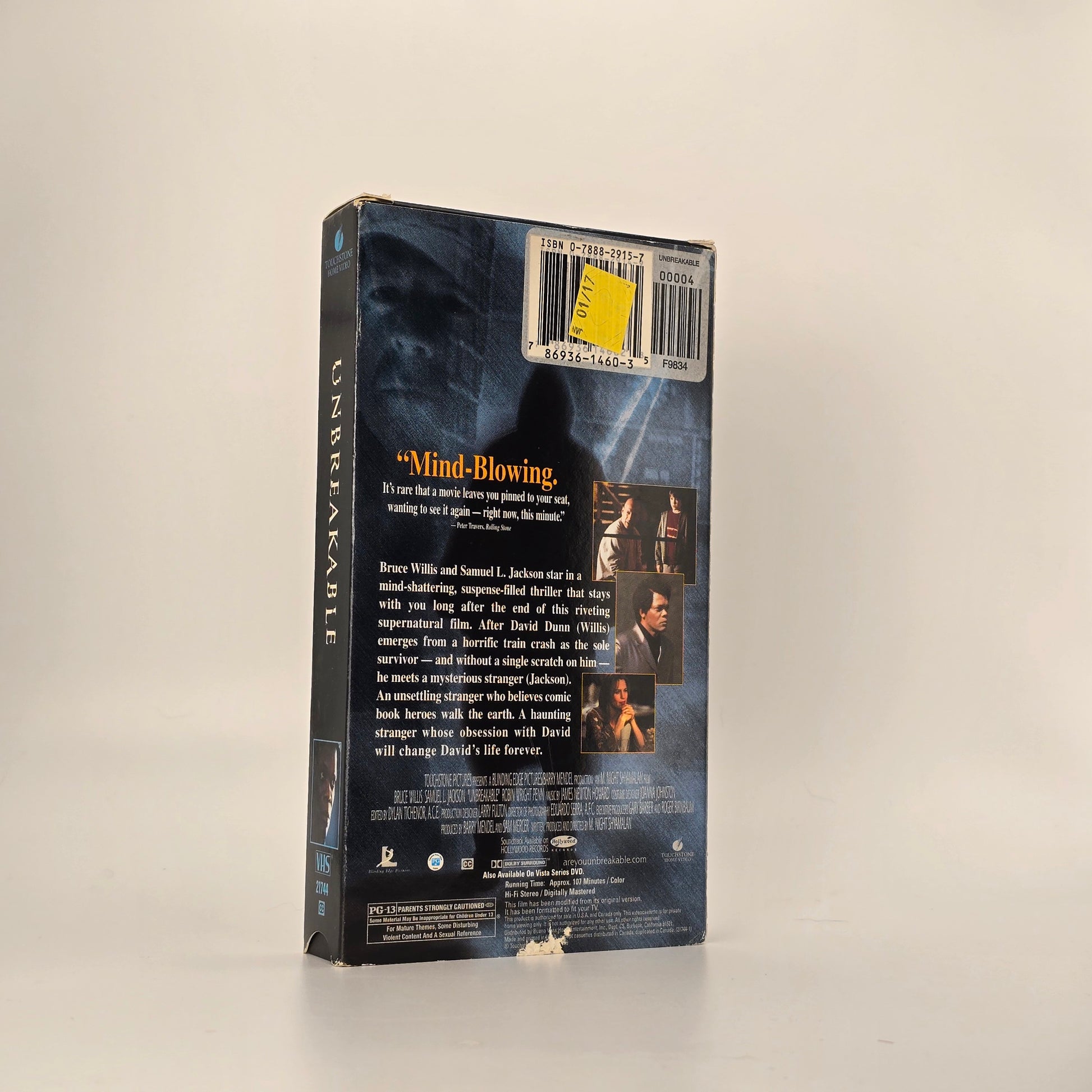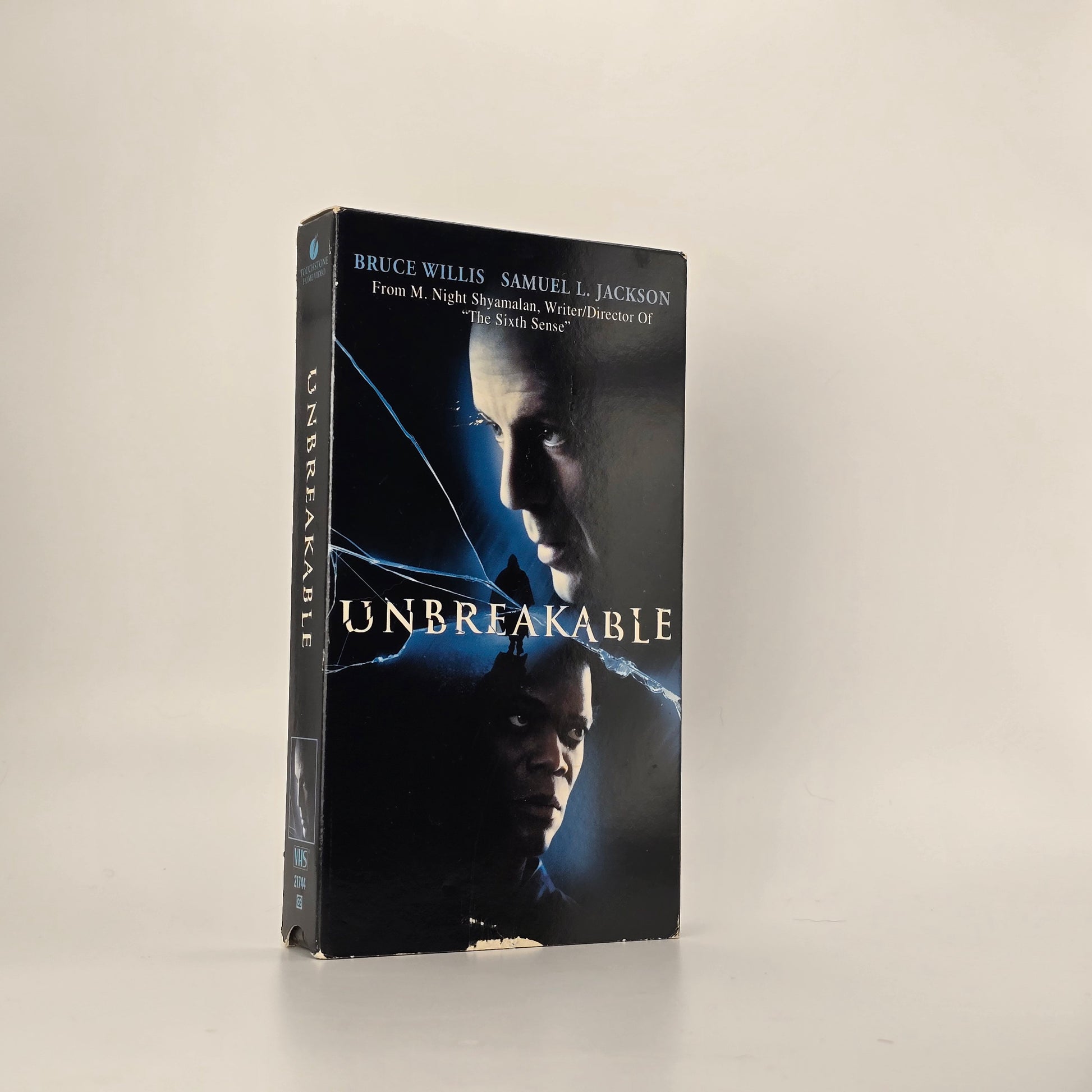 Unbreakable on VHS is a must-have for collectors of late 90s and early 2000s thrillers and M. Night Shyamalan fans. Starring Bruce Willis and Samuel L. Jackson, this cult favorite blends suspense, mystery, and comic book mythology into a slow-burn psychological thriller that gained a massive following over time. After surviving a deadly train crash without a scratch, Willis’s character begins to question his own reality when he meets a mysterious stranger who believes he may be something more than human. This original VHS release captures the era perfectly with its moody artwork and classic Touchstone home video packaging. A great addition for collectors building a Shyamalan filmography, superhero-adjacent cinema collection, or late 90s thriller shelf. Displays well and brings strong nostalgia for fans of physical media and theatrical home releases.
